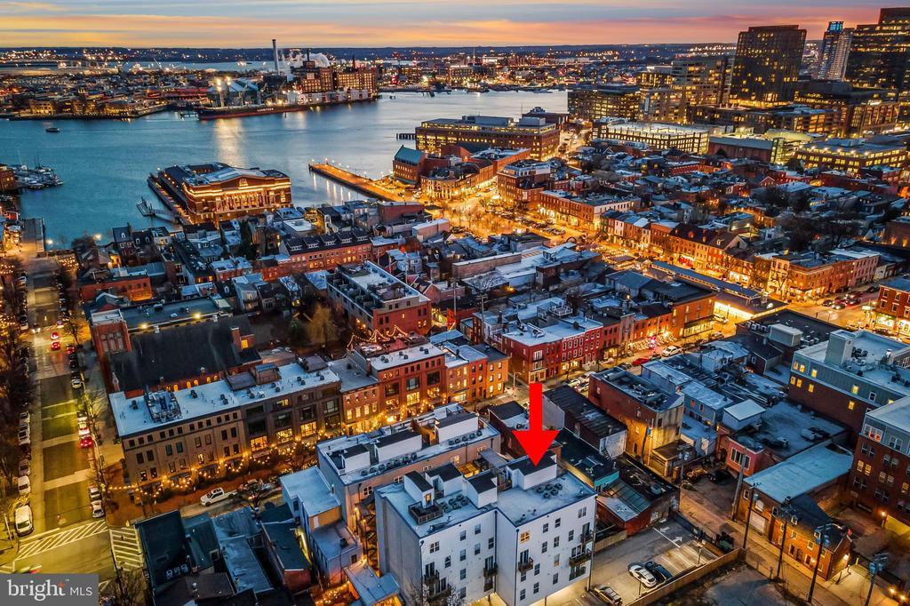 A rarely available corner 2 bed, 2.5 bath penthouse condo in the heart of Fells Point with secure covered parking and a rooftop deck with sweeping views of the harbor and city skyline. Elevator in building! Open main level with hardwood floors, spacious living area, powder room and a Juliet balcony. 2 large bedrooms, each with their own bathroom, laundry, and stairwell access to rooftop deck. Primary comes with ample natural light, large ensuite bathroom and walk-in closet. The private rooftop deck will wow you with water and city skyline views. A perfect space to unwind after a busy day, hang out with friends and watch the fireworks on NYE and 4th of July. Gated parking lot with an assigned parking space for 1 car (#10) and community offers easy communication to use other resident spots when available for your guests. Live in an incredible building with a gated community courtyard complete with a grilling area, seating, Koi pond, elevator and secured parking. Located minutes from the iconic Thames Street in Fells Point, Harbor East, Canton, and Johns Hopkins. Easy access to I-95 and I-895. Steps to the waterfront, the newly renovated Broadway Market, Starbucks, Whole Foods, shops and some of the city’s finest dining. Pet friendly. Immediately available! Please note: Rooftop deck is under construction for approx. the next 30-60 days.