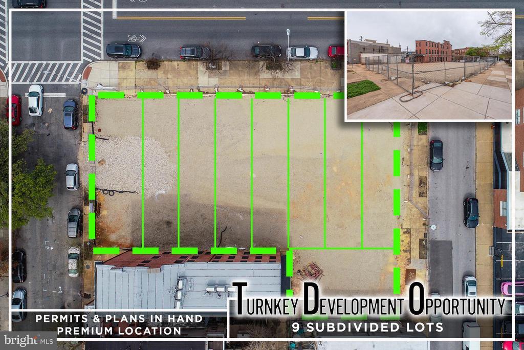 INCREDIBLE TURN KEY DEVELOPMENT OPPORTUNITY IN THE HEART OF CANTON! An opportunity like this doesn't come along very often - opportunity to purchase a cleared lot with plans for 9 luxury garage townhomes. Subdivision has already been completed and permits are approved and ready to be issued. Owner has plans for 9 townhomes ranging in price from 750k - 1.2 mil. Location can't be beat - located 3 blocks from Canton Square and walking distance to the Canton waterfront and Patterson Park. Property only to be sold as a package - individual lots will not be sold.