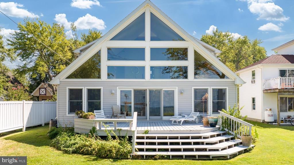 This quant 1-bedroom, 1-bath waterfront cottage offers direct Bay access and views. The main level includes a cozy living room, eat-in kitchen, hardwood floors, Vermont Casting propane fireplace and a full bath, along with a large deck overlooking the water. The second floor features a spacious bedroom with a large skylight and private balcony that captures stunning Bay vistas. There is a hardwood Maple Floors throughout.