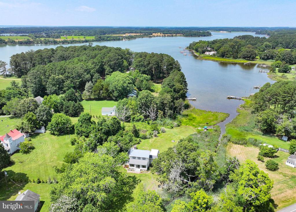 Nestled along the peaceful waters of Swan Cove with access to Harris Creek, this circa 1890 farmhouse is full of Eastern Shore character and charm. Set on 1.38 private acres, the property offers the peace and serenity you’re seeking. The spacious enclosed front porch is accented with wood floors and a wood ceiling setting the tone of this charming home. The inviting foyer features original Crescent Moon shutters and leads into a bright open living room with hardwood floors and exposed wood beams ceilings. A cozy waterside den with a double-sided wood-burning fireplace is the perfect place to unwind. The kitchen offers tile floors and white cabinetry and leads to the dining room—complete with hardwood floors and a built-in barn wood bar overlooking the backyard and the cove beyond. The first-floor primary suite features hardwood floors, a double sided fireplace and a unique en-suite bath with a tub/shower combo. A second full bath and laundry room complete the main level, while two spacious guest bedrooms are located upstairs. Outside, the backyard patio is an ideal spot to relax or entertain. Launch a kayak, paddle board, canoe, or small flat-bottom boat and explore the surrounding creeks and rivers. Enjoy crabbing, fishing, and sunset cruises across Harris Creek. Multiple boat landings nearby offer easy access for avid boaters looking to enjoy, fishing, crabbing, water sports and all that the surrounding waterways have to offer. Located just 5 miles from historic St. Michaels, this home is just minutes from charming boutiques, renowned restaurants, and scenic waterfront attractions. Known for its vibrant maritime heritage and welcoming small-town feel, St. Michaels offers endless opportunities for boating, dining, and exploring.
