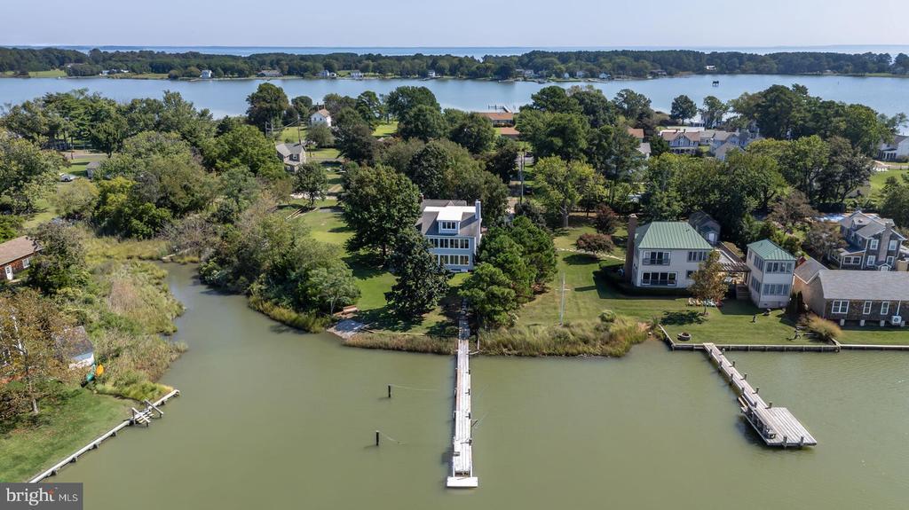 Experience waterfront living in the historic community of Fairbank on Tilghman Island. This home offers timeless character and sweeping views of Black Walnut Cove. Built in 1900 with later additions, you'll find multiple decks, porches, and patios, along with a unique circular staircase leading to the second-floor porch, enhancing its architectural charm. Inside, the gourmet kitchen and family room provide a central gathering space with expansive water views, granite countertops, and custom cabinetry. A secondary kitchen provides added convenience for entertaining. The owners have invested in significant updates, including new two-stage heat pumps with UV filter and whole-house dehumidifier, fresh interior paint throughout, refinished hardwood floors, and an encapsulated crawlspace for efficiency. The second floor offers three bedrooms and full bath. On the third floor you will find your Owner's Suite with views to your private dock and en-suite bathroom with tile shower. Outdoor amenities include a boat ramp, dock with water and electric, and floating dock making days on the water simple and enjoyable. The side yard of the home offers a firepit and ample space for a pool. With over 3,500 square feet and these amenities, this home presents a great opportunity for your Eastern Shore retreat or short term vacation rental, with approval.