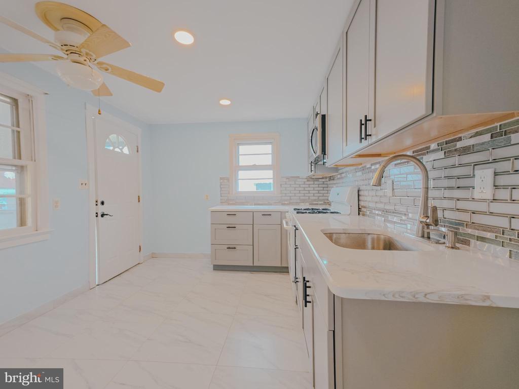 Welcome to this elegantly upgraded 4-bedroom, 1-bathroom residence featuring contemporary enhancements. The property includes a new luxury vinyl floor, fresh paint, and a newly updated kitchen equipped with quartz countertops, new backsplash, new cabinets, a new sink, and new tiles. Additionally, it offers newer HVAC systems and a water heater. Enjoy the sunroom with new tiles which provides a delightful view of the lush green backyard. The basement has an exterior entrance. This property is conveniently located close to shopping centers, major highways, train stations, and Trenton Airport. Do not miss this opportunity; visit your dream home today!