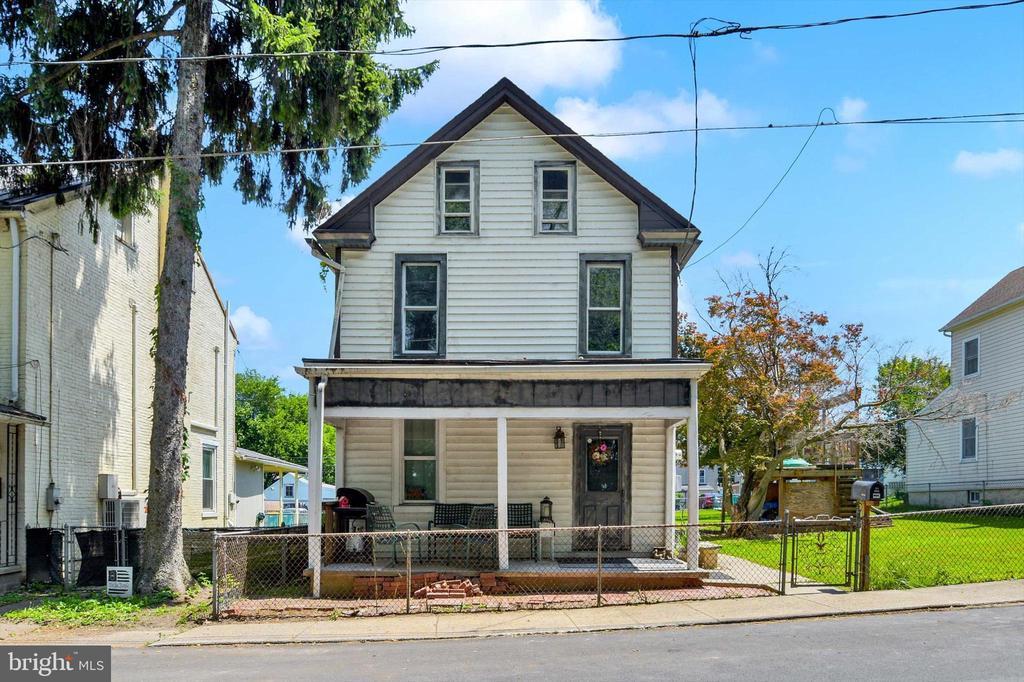 Welcome to this detached home in Enola situated on a double expansive lot and offering over 1,300 square feet of finished living space! Enjoy your morning coffee on the charming covered front porch before stepping inside to a cozy living room featuring luxury vinyl plank flooring. The spacious eat-in kitchen is filled with natural light thanks to vaulted ceilings and a skylight, with easy access to the backyard. A main level laundry room and convenient half bath add to the functionality. Upstairs, you’ll find two generously sized bedrooms and a full bath. The primary suite includes hardwood floors and a ceiling fan for comfort. An unfinished basement provides ample storage space. Outside, enjoy a level double lot, fenced-in backyard—perfect for pets, play, or entertaining—plus a storage shed and off-street parking. Conveniently located near shopping, dining, and entertainment. A joy to own!