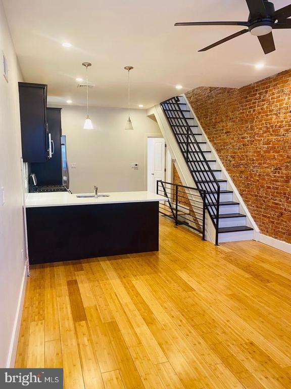 This beautifully updated 4-bedroom, 2-bathroom home seamlessly combines modern convenience with timeless charm. Upon entering, you’ll be greeted by a spacious living area highlighted by stunning exposed brick, adding warmth and character to the space. The open-concept peninsula kitchen is thoughtfully designed with a stainless steel appliance suite, sleek cabinetry, and ample counter space, making it perfect for both cooking and entertaining. Adjacent to the kitchen, direct access to a private patio provides the perfect setting for outdoor dining, morning coffee, or simply unwinding. The fully finished basement expands the home’s versatility, offering additional living space along with a dedicated laundry area. This space can be transformed to fit your needs, whether as a home office, gym, or media room. Upstairs, sunlit bedrooms provide generous storage and a comfortable retreat. Throughout the home, gleaming hardwood floors enhance the aesthetic, while central air ensures comfort in every season. Don't miss out on this incredible opportunity—schedule your showing today!