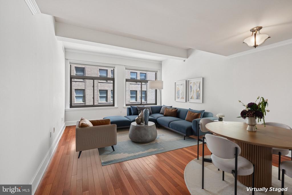 Move-in ready and impeccably appointed, this stunning one-bedroom residence at The Ellington offers an elevated lifestyle in the heart of the city. The main living and dining area showcases gleaming hardwood floors, soaring ceilings, and oversized windows that flood the space with natural light—creating a warm and airy ambiance ideal for both relaxing and entertaining. The gourmet kitchen is outfitted with premium finishes, including sleek granite surfaces, stainless steel appliances, and high-end cabinetry. A spacious bedroom provides excellent closet space and a serene retreat from the urban energy. The beautifully finished bathroom features luxurious materials and a refined design. Residents of The Ellington enjoy a meticulously maintained building with exceptional staff and top-tier amenities. A true turnkey opportunity for upscale city living.