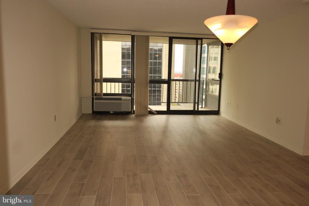 One bedroom plus alcove with views of Washington Square and Benjamin Franklin Bridge at Independence Place! This one bedroom plus den, one and a half bath home is on a high floor and has vinyl floors throughout. Enter the home through a foyer with a powder room and storage closet. The bright and sunny living room/dining room with a wall of floor-to-ceiling windows and a terrace overlooking Washington Square, Benjamin Franklin Bridge, and Delaware River. The kitchen is accessible from both the foyer and living room, and features white cabinetry and appliances. The primary bedroom has a walk-in closet with recessed lighting, additional closet, and full ensuite bathroom with tile floor, combo bath/shower, large vanity, and linen closet. Additional highlights include a large laundry room with a stackable washer and dryer, and plenty of light throughout. Residents of Independence Place enjoy a twenty-four hour doorman and concierge, a brand new beautifully appointed lobby with a state-of-the-art fitness center on the main level, on-site management, and individual heat & air conditioning controls.