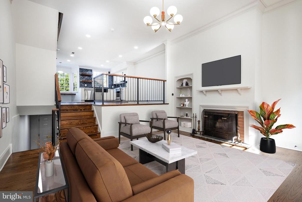 This isn’t your standard property — this fully renovated 4-level, 3-bedroom, 2 full bath home was professionally designed by a local builder, designer and craftsman, with high-quality finishes and one-of-a-kind details throughout. The main level welcomes you with a bright living room featuring a wood-burning fireplace, original hardwood floors, tons of windows, and a custom decorator chandelier overhead. Original doors with vintage crystal knobs add timeless character. The kitchen which is open to the dining area and overlooks the living room is a chef’s dream, showcasing custom warm white cabinets, floating oak shelves, slate floor tile, and a dark blue zellige backsplash. A charming window seat, built-in coffee bar area, high-end stainless steel appliances, and recessed lighting complete the space, blending function and beauty. Upstairs, bedrooms are enhanced with custom built-in closets throughout. The primary bathroom features marble tile walls, rainfall shower head, Bluetooth speaker fans in all bathrooms, and patterned ceramic floor tile. The hallway bath offers off-white Zellige tile, a rainfall shower head, Bluetooth speaker fan, and matching patterned ceramic flooring, delivering spa-like luxury at home. The lower level expands your living options with a versatile bonus space anchored by an electric fireplace framed in Venetian plaster walls, perfect for an entertainment area, gym, office, or guest suite. Step outside to a private backyard retreat with original slate pavers, a wood fence with private gate entrance, a well-maintained garden, and a charming Dutch door that opens half at a time for a perfect indoor-outdoor connection.