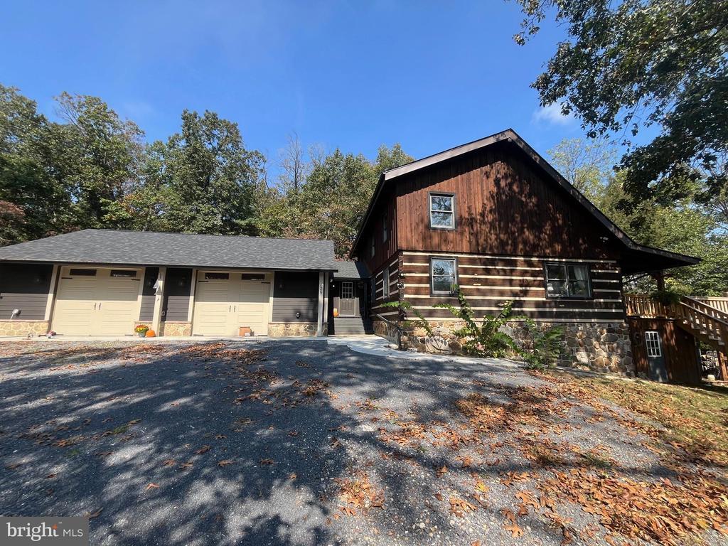 COVETED, QUAINT & GATED ICE MOUNTAIN SUBDIVISION WITH PRIVATE ACCESS TO THE NORTH RIVER WITH A SWINGING BRIDGE OVER THE NORTH RIVER WHICH LEADS TO THE PRESERVES, FOR HIKING UP TO THE TOP OF ICE MOUNTAIN. THIS PROPERTY SETS ON 3.01 ACRES WITH THE LOWER PART OF THE PROPERTY FRONTING THE NORTH RIVER, WITH NO ONE IN SIGHT WHILE RELAXING ON THE BENCH. FIBER OPTICS ARE AVAILABLE FOR WORK OR PLEASURE. THE LOG HOME WAS BUILT IN 1993, WITH THE OWNER MAKING MULTIPLE UPDATES. NEW SHINGLES IN 2022, ALONG WITH NEW SKYLIGHTS. THE 2-CAR GARAGE WAS RECENTLY BUILT WITH A BREEZEWAY WHICH ENTERS INTO THE NEW KITCHEN : CABINENTS, CERAMIC TILE FLOORING, LIGHTING AND WELL-EQUIPPED APPLIANCES, WITH ALL NEW STAINLESS STEEL APPLIANCES: DISHWASHER, DOUBLE REFRIGERATOR, GAS STOVE / OVEN WITH MICROWAVE ABOVE, ALONG WITH THE FARM-STYLE PORCELINE SINK. INCLUDED IS A BUTCHER BLOCK, ALONG WITH THE SEPARATE AREA FOR COFFEE / DRINKS AND ENTERTAINING. THE KITCHEN FLOWS INTO THE ADJOINGING IS A 2 STORY WOODEN CEILING IN THE DINING AREA WITH HARDWOOD FLOORING. EXTENDING INTO THE 2-STORY STONE, WOOD-BURING FIREPLACE WHICH RADIATES WARMTH ON BOTH LEVELS WITH THIS OPEN FLOOR PLAN. THE SPACOIUS LIVING ROOM FACES THE STONE FIREPLACE WITH MANTEL, ALONG WITH PLENTY OF NATURAL LIGHT. EXITING ON THE BACK SIDE OF THE MAIN LEVEL IS A COVERED, WRAPPED DECK FOR GRILLING AND ENTERTAINING. ON THE MAIN LEVEL IS THE FIRST BEDROOM, WITH DOUBLE CLOSETS AND WOOD- BEAMED CEILINGS. CLOSE BY IS A FULL BATHROOM. THE UPPER LEVEL BALCONY HAS A VIEW OF THE FULL-SIZED STONE FIREPLACE W/ A MANTLE WHICH FACES THE COZY SIZEABLE LIVING ROOM, WITH HARDWOOD FLOORING. THE SPACIOUS UPPER LEVEL AREA COULD ALSO SERVE AS ANOTHER SLEEPING SPACE, WITH AN ADDITIONAL A FULL-SIZED BATHROOM WITH A SOAKING TUB. THE LOWER LEVEL HAS A WALK-OUT BASEMENT WITH A WHOLE-HOUSE GENERATOR INSTALLED IN 2024, WHICH HOLDS 500 GALLONS OF PROPANE. INCLUDED IS A WHOLE HOUSE AIR FILTER SYSTEM AND EXTERIOR SECURITY CAMERAS. THERE'S AN OPTION ON THE ADJOINING LOT 5, ALSO WITH RIVER FRONTAGE. ICE MOUNTAIN IS A COVETED AREA, WITH THE NORTH RIVER WINDING AROUND THE GATED SUBDIVISION. LOCATED BETWEEN SLANESVILLE & CAPON BRIDGE, OFF OF COLD STREAM ROAD. EASY DRIVE FROM THE DC/METRO