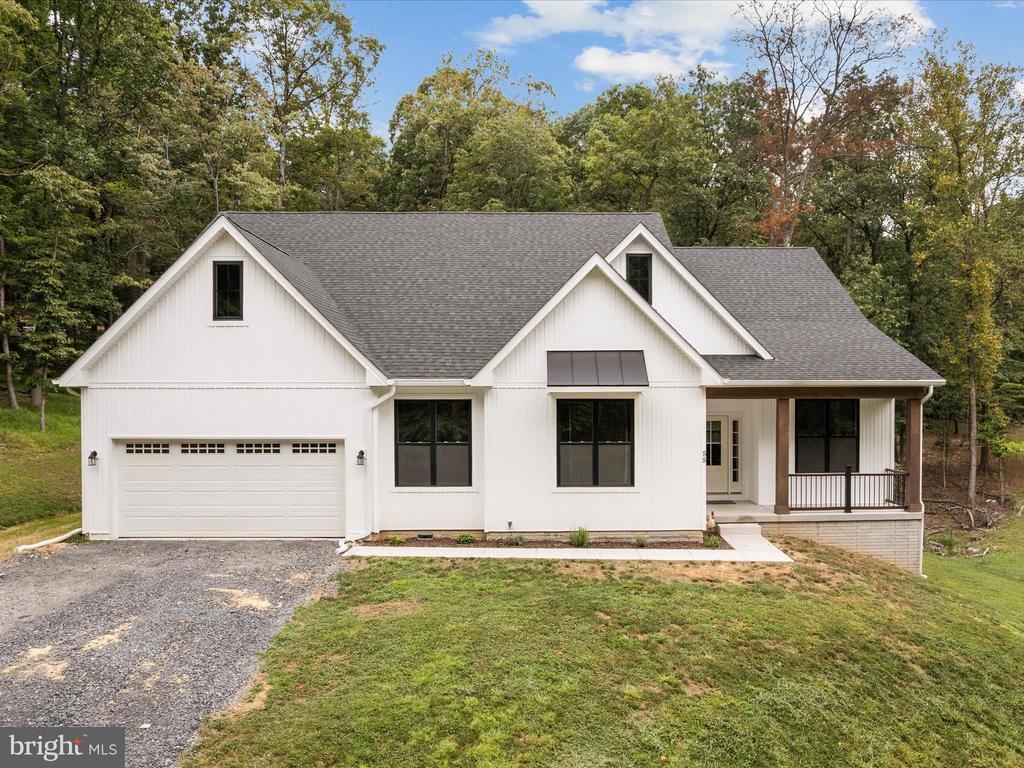 *NEW PRICE* Nestled in the foothills of the Blue Ridge Mountains sits this attractive modern farmhouse with an open-concept, 4-bedroom floor plan on a full walkout basement and 0.69-acre lot. Newly constructed just two years ago, the private Lake Forest Estates community provides wooded views and access to various recreational amenities, including a 10-acre lake with a fishing dock, basketball court, picnic pavilion, 4x4 trail, and hunting area. A beautiful front porch with wood columns, tall ceilings, and consistent LVP flooring invite you into this 2,100 square foot ranch-style residence. The focal point is a gorgeous gas fireplace with a stone facade that spans the height of the vaulted ceiling. A stainless farm sink, white cabinetry, adjacent pantry, granite counters, and huge island with seating make the kitchen both functional and inviting. The primary suite features an ensuite bath with a free-standing soaking tub, walk-in tile shower, dual vanities, and his/her closets. Three additional bedrooms, another full bath plus half bath, and a laundry/mud room off the garage complete the main level layout. The unfinished lower level (with rough plumbing for another bathroom and walkout sliding door) affords endless possibilities for additional living space, storage, recreation, or hobbies. Mature trees grace the backyard, providing both shade and privacy. Get to Route 9 and convenient downtown amenities in just about 10 minutes from this secluded yet easily accessible location with well-maintained winter roads, along with access to the Appalachian trail and proximity to the local Mountain Lake Club. Don't wait to call this one home!